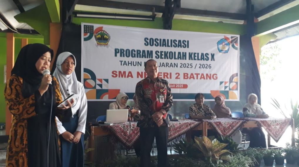 Sosialisasi program Sekolah Menengah Atas (SMA) Negeri 2 Batang adalah kegiatan untuk memperkenalkan dan menjelaskan berbagai program sekolah kepada siswa, guru, dan orang tua. Kegiatan dilaksanakan pada hari Jum'at tanggal 11 Juli 2025 dan dihadiri oleh Komite Sekolah, Kepala sekolah dan jajarannya, guru, tata usaha, perwakilan siswa. Kegiatan ini mencakup pengenalan kurikulum baru, program ekstrakurikuler, tata tertib sekolah, serta program-program lain yang bertujuan untuk meningkatkan kualitas pendidikan dan lingkungan belajar.